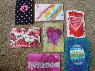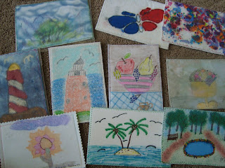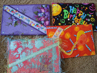I went to a workshop 6 days ago and my mind keeps drifting back to fabric postcards. My head is spinning with thoughts of using my fabric, trims, quilt stuff, ribbons etc. to do these cards! I want to retire from work so I can stay home and play all day every day. By I must drag myself to the Middle School and spend my day with the 13 years olds for 2 more years. Your ideas are fabulous! Maybe I will get into the trading too someday.