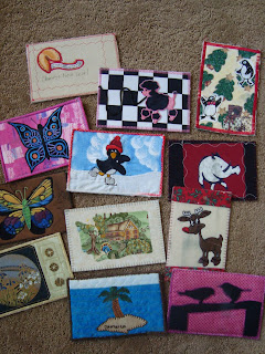 I have been thinking about doing this since the interview with SwapDex. It was really how i started in the big, bad world of swapping. I know, of all the things- fabric postcards.