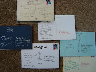 * Use fabric, paint, crayons or whatever else. You are just designing the FRONT of the postcard only. Play around with different mediums.