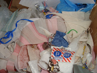 Go through your sewing trash. Mine is a box that somehow fills up quickly…does yours? don’t mind the wrappers and other goods….just the fabric scraps. that is all we need.